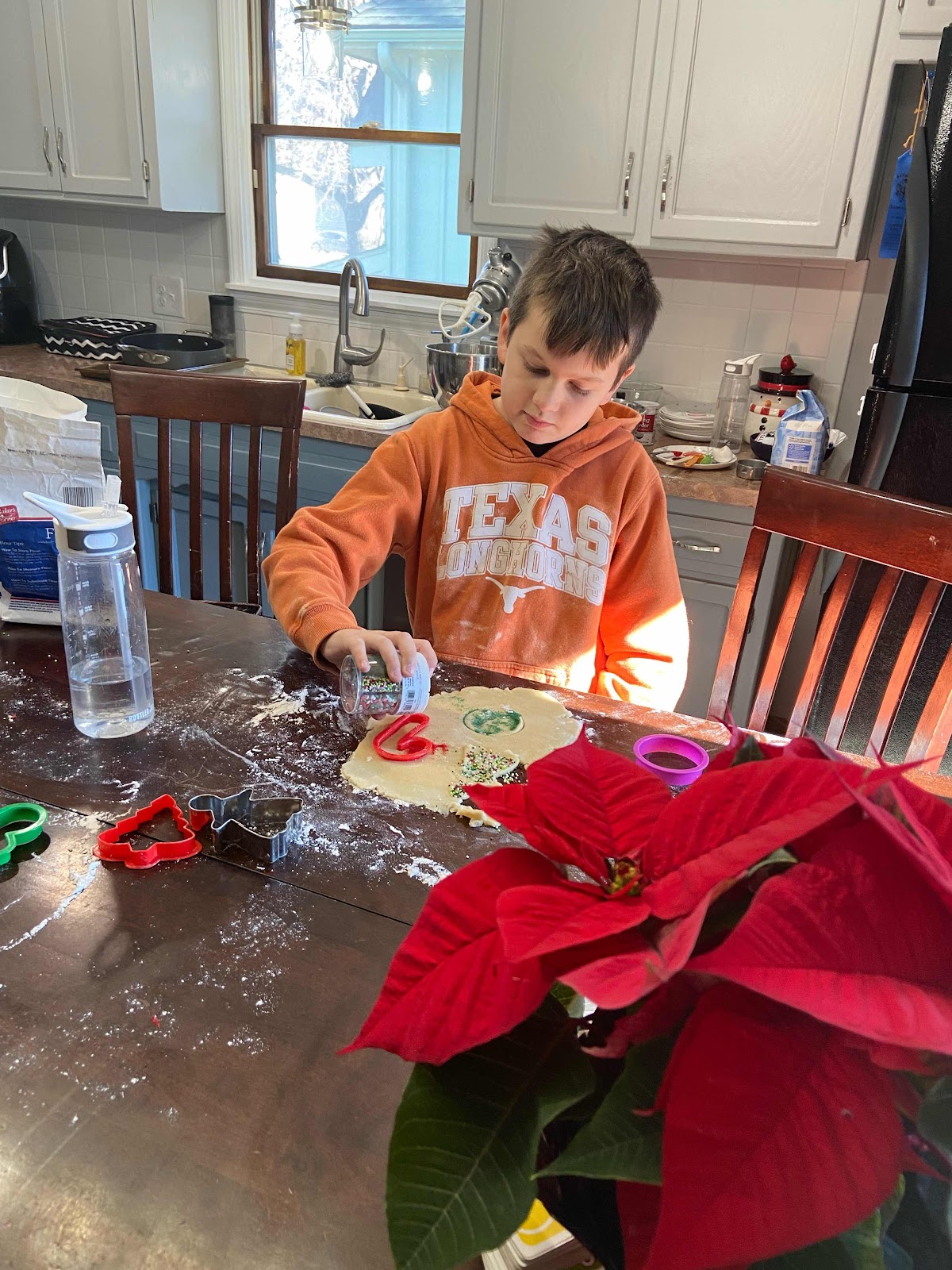 We have some wonderful sugar cookies now (no icing this time - we just did sprinkles and such). I probably need to make another batch that they can decorate with icing.